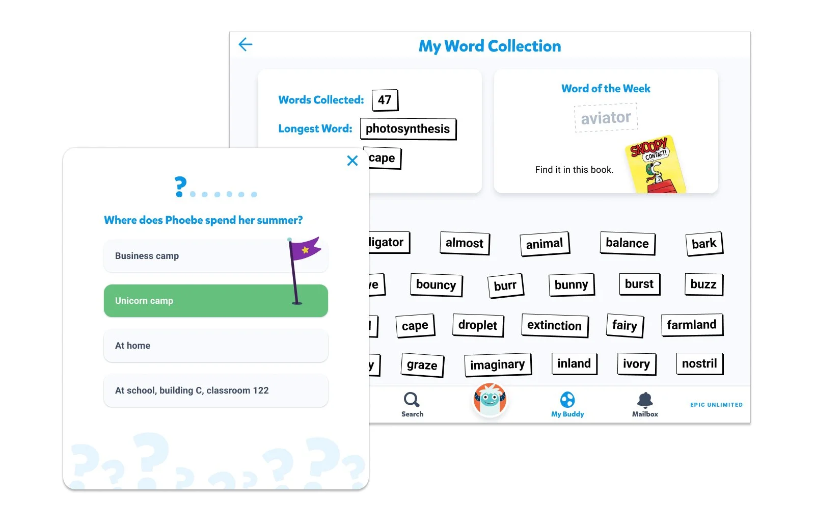 Hi, I’m Carey! I’m a product designer in the SF Bay Area. I love solving problems — the bigger the better! Peek-a-BookA novel preview interaction to help kids browse books fasterEpic! Learning Tools + Fun StuffQuizzes, vocabulary games, and other delightful experiencesEpic! Data ReportingData visualizations for teachers and administratorsSquare Panda SDKManaging connections with bluetooth peripheralsSquare Panda Wrong Answer FeedbackCorrective feedback system for learning gamesSquare Panda Admin CatalogE-store admin portal to manage pricing and geoavailabilitySquare Panda